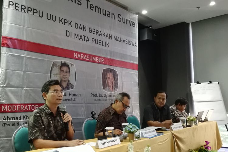 Hal tersebut diungkapkan oleh Direktur Eksekutif LSI Djayadi Hanan dalam paparan rilis survei Gerakan Mahasiswa di Mata Publik yang di gelar di Erian Hotel, Jakarta, Minggu (6/10/2019).