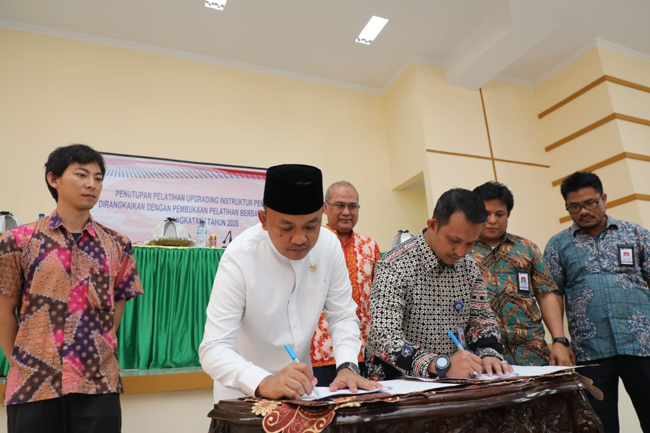 TROTOAR. ID, BANTAENG — Pemerintah Kabupaten Bantaeng berkerja sama dengan Ditjen Binalattas Kemnaker, JICA, dan Ehime Toyota Jepang meneken perjanjian kerja sama di Balai Latihan Kerja (BLK) Bantaeng. Perjanjian kerja sama ini terkait dengan upaya peningkatan SDM dari Kabupaten Bantaeng.