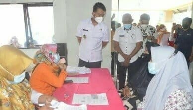 Bupati Sinjai Andi Seto Asapa (ASA) saat memantau penyaluran Bantuan Sosial Tunai (BST) di Gedung Pertemuan Sinjai pada pekan lalu