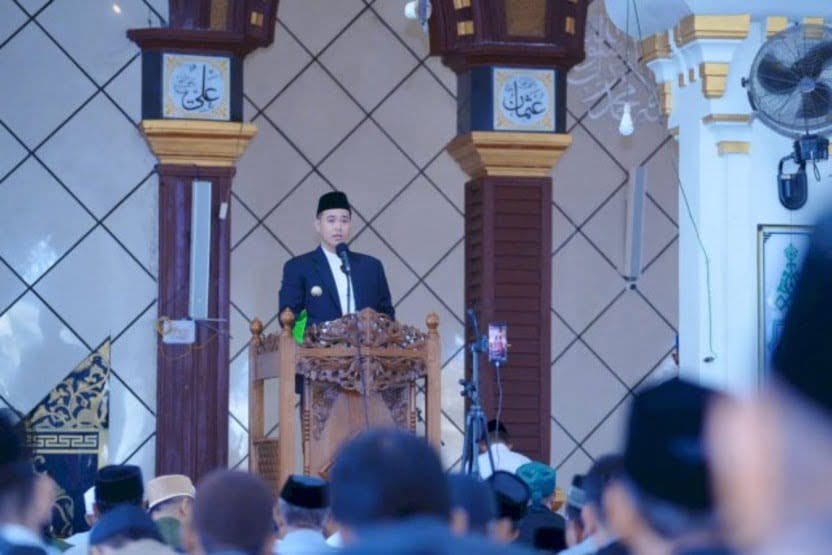Dalam sambutannya kepada jamaah, Bupati MYL menyampaikan ucapan selamat hari raya Idul Fitri 1445 H.