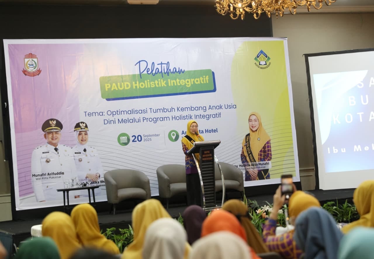MAKASSAR, TROTOAR.ID — Bunda PAUD Kota Makassar, Melinda Aksa, mengajak seluruh pemangku kepentingan untuk bersama-sama mewujudkan Pendidikan Anak Usia Dini (PAUD) Holistik Integratif di Kota Makassar.