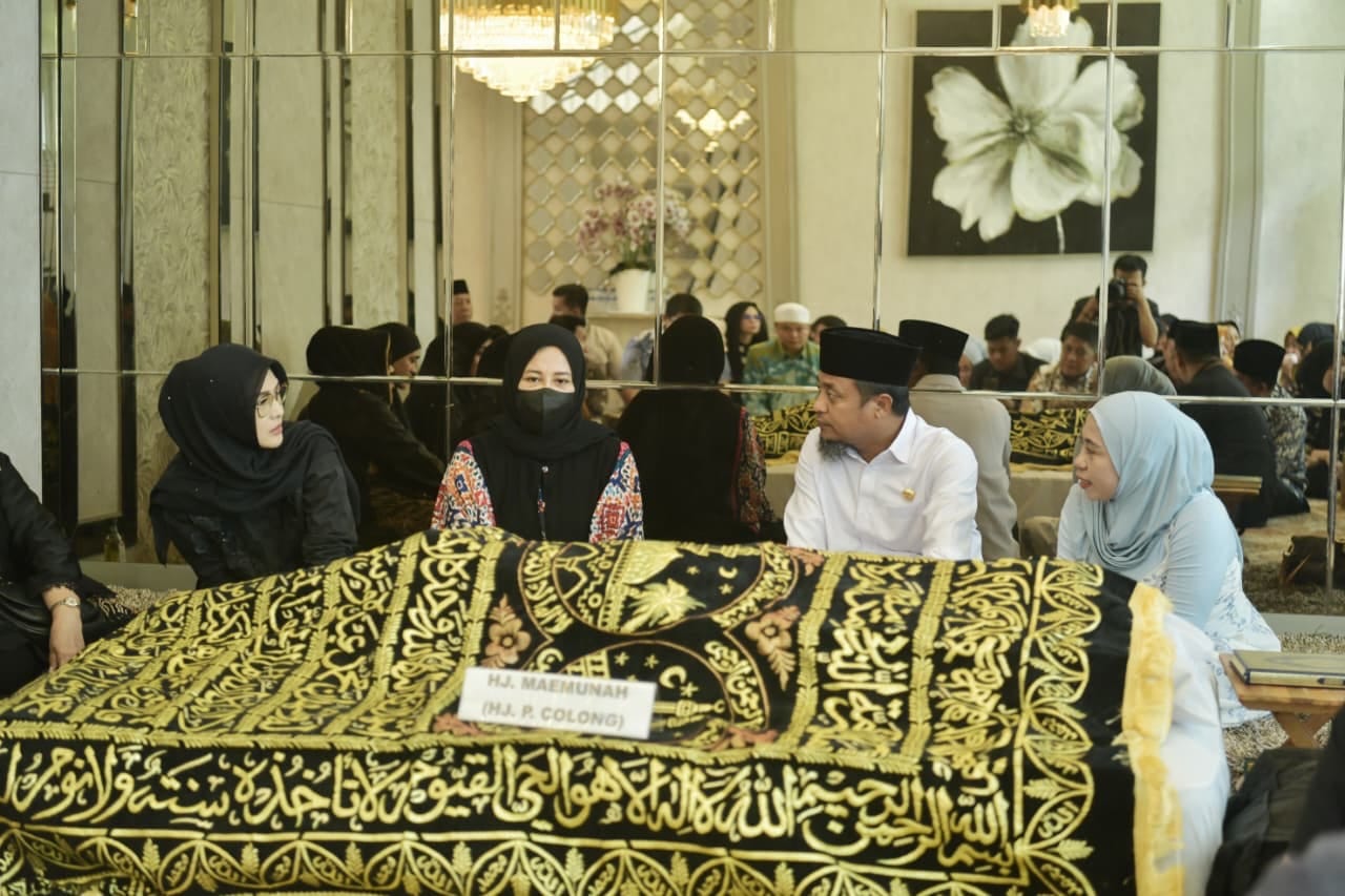 Mengenakan kemeja putih dan peci hitam, Gubernur Andi Sudirman hadir langsung di rumah duka. Ia duduk di sisi jenazah bersama Wakil Gubernur Sulsel Fatmawati Rusdi, sekaligus memanjatkan doa untuk almarhumah.